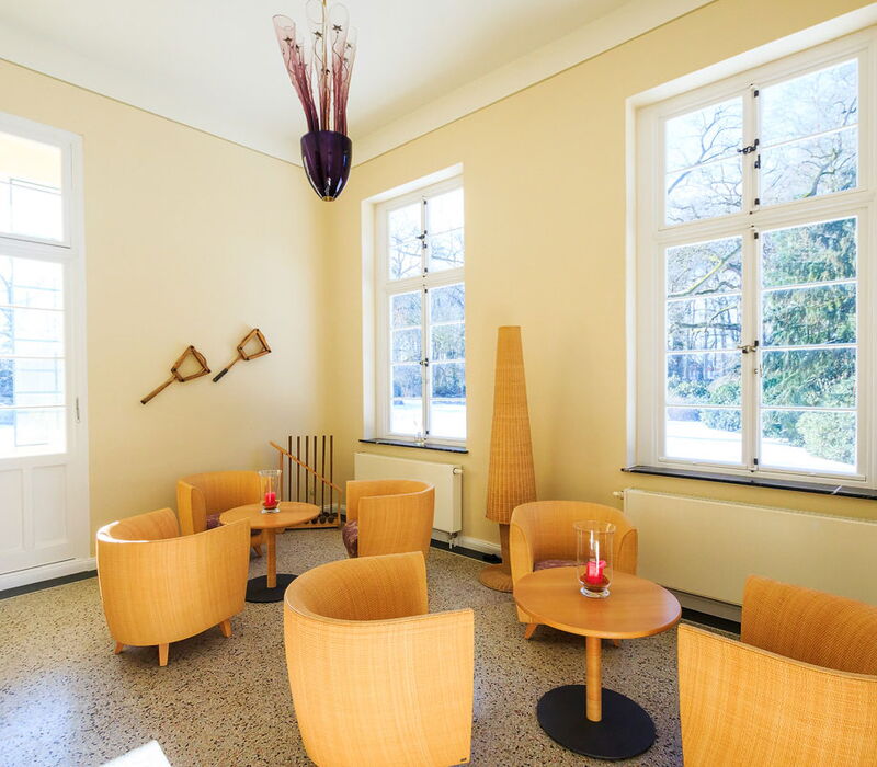 Insbesondere das Obergeschoss des Gutshauses wird gern für geschäftliche Meetings genutzt. Die Räume sind minimalistisch eingerichtet, sodass der Fokus uneingeschränkt auf dem Thema der Veranstaltung liegt. Die Caterer sorgen im Erdgeschoss für das leibliche Wohl der Teilnehmenden. Ein Gang auf den Balkon oder durch den Garten sorgen in den kreativen Pausen für frische Gedanken.